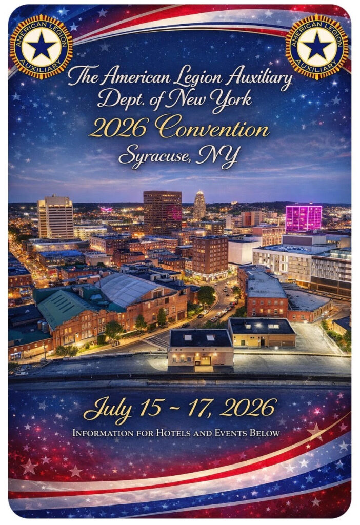 This year, all three conventions—the American Legion, American Legion Auxiliary (booking link for auxiliary is below) and Sons of the American Legion—will be held at the Marriott Downtown Syracuse. We are grateful to the Marriott Downtown staff for helping make this possible.